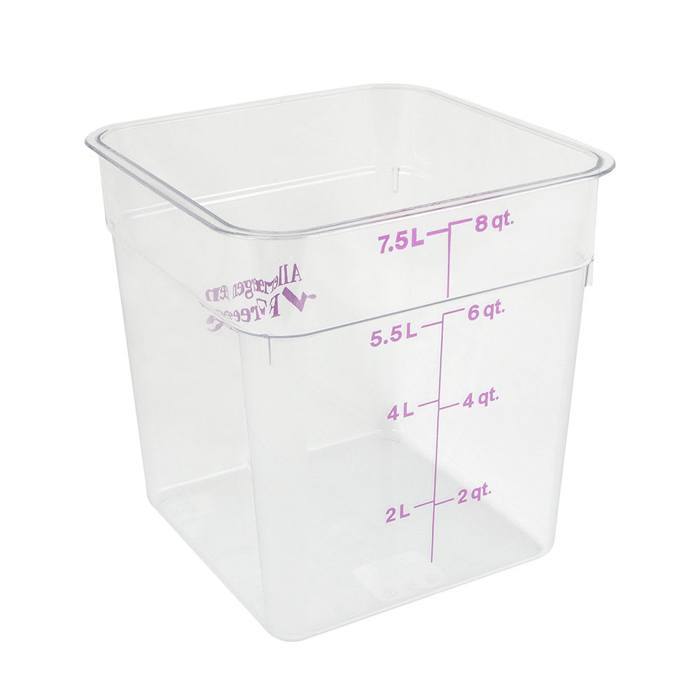 CamSquare Food Container, 8 qt., 8-3/8″L x 8-3/8″W x 9-1/8″H, allergen-free purple, allergen-free logo imprinted, polycarbonate, dishwasher safe, resists stains & odors, clear, NSF