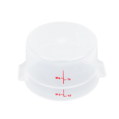 The Cambro RFS2PP190 food container is made of durable, stain-resistant polypropylene which is translucent for partial product visibility. It endures temperatures from -40 to 160 degrees Fahrenheit and has a 2-quart capacity. Exterior graduations enable operators to identify how much product is stored in the container.