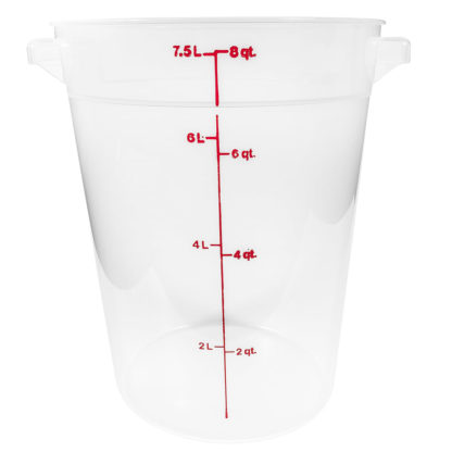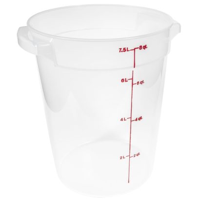 Storage Container, round, 8 qt., 9-15/16″ dia. x 10-7/8″H, translucent, polypropylene, NSF