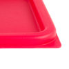 The Cambro SFC6451 CamSquare cover has a snap-tight design that protects products from contamination and helps maintain freshness. A thumb tab on the lid makes it easier to remove. The lid comes in a red winter rose color, so it can be used in color-coded systems to designate specific uses. Since it is made of polyethylene, the Cambro SFC6451 CamSquare cover is durable enough to stand up to heavy use in commercial applications. It fits on 6-quart and 8-quart storage containers.
