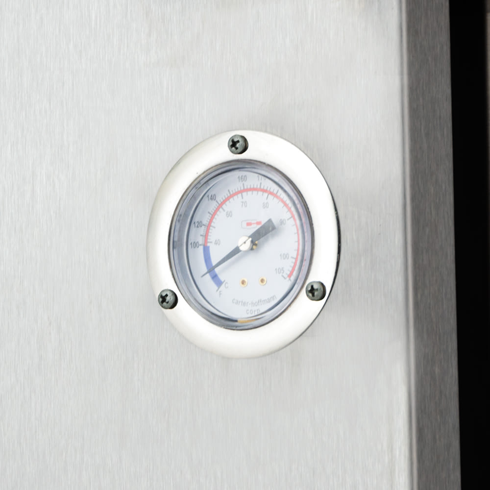 The Carter-Haffman BB150 Classic Carter heated banquet cabinet can transport 180 plates of warm food in a single trip. Its welded wire shelves are sturdy and reinforced with shelf clips, so they can support heavy loads. Preheating to 160 degrees Fahrenheit in only 20 minutes, the cabinet holds food at temperatures as high as 200 degrees Fahrenheit. Heat stays inside the cabinet due to 1-inch-thick fiberglass insulation, while a silicone gasket keeps heat from escaping around the doors.