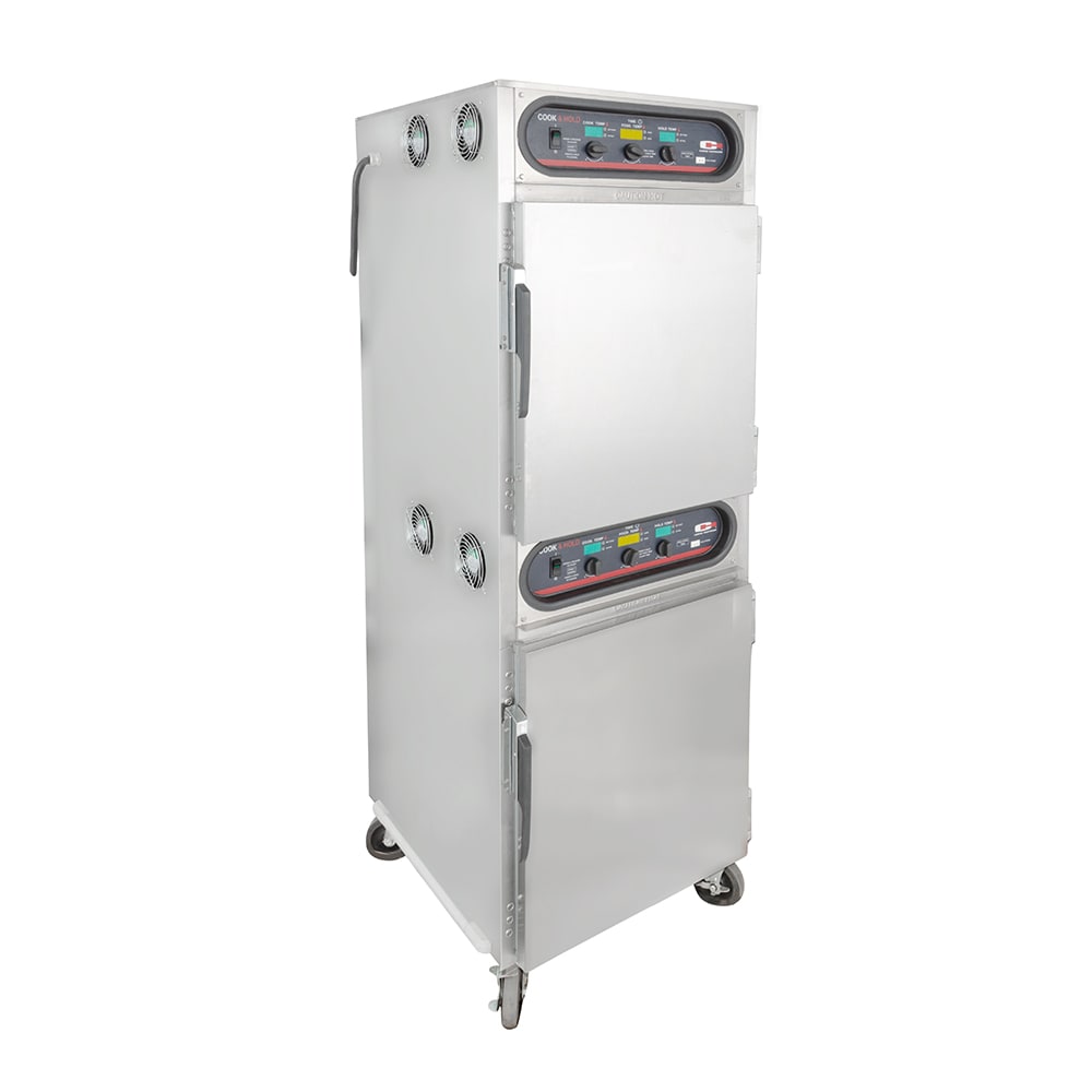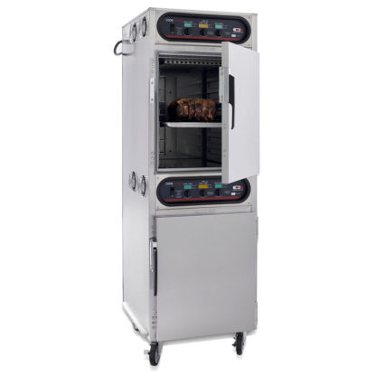 Cook & Hold Cabinet, electronic controls, cook to time or temperature; meat probe included, capacity (16) 18″ x 26″ sheet pans (on optional wire shelves end-loaded), (16) 12″ x 20″ x 2-1/2″ & GN1/1 pans (side-loaded 2 per shelf), (16) GN2/1, (2 per shelf), 240 lb. approximate meat capacity, NSF, UL, CE