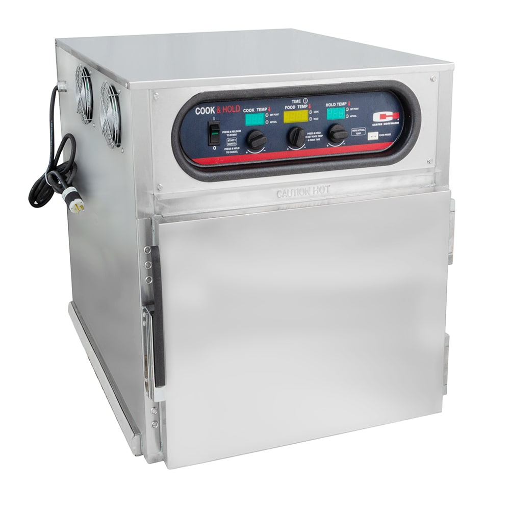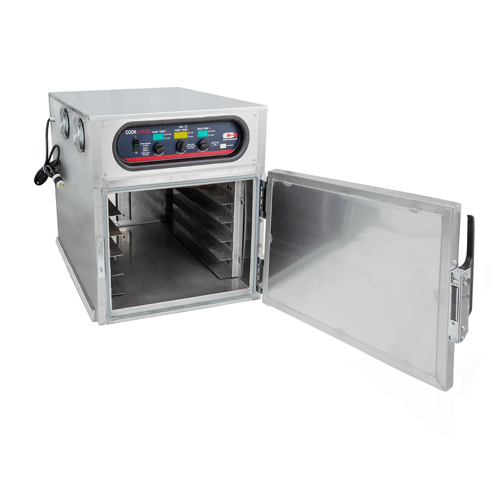 Cook & Hold; under-counter; electronic controls; cook to time or temperature; meat probe included; capacity (5) 18″x26″ sheet pans. 12″x20″ steam table pans can be placed on optional wire shelves (capacity 10, 2 per shelf, side-loaded). 100 lb. approximate meat capacity, NSF, UL, CE, 220-240v/60/1ph