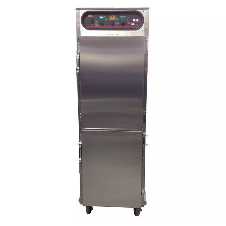 Cook & Hold Cabinet, electric, single deck, deep oven, electronic controls, cook to time or temperature, meat probe included, (9) 18″ x 26″ trays, approximately meat 120 lbs, stainless steel construction, 5″ casters, cUL, NSF