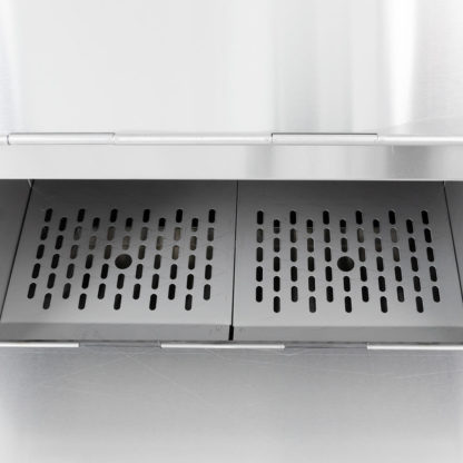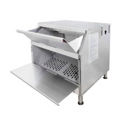 Holding up to 20 gallons of product, the Carter-Hoffmann CW1 chip warmer uses a first in, first out system to ensure chips stay fresh. The cabinet’s top door folds out and creates a ramp for filling. When the user is ready to load baskets of chips, the bottom serving door folds out and creates a platform for the basket to sit on while it is filled with chips.