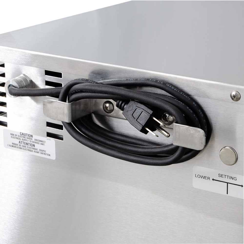 The Carter-Hoffmann CW4 nacho chip warmer features a top and bottom door to allow you easily implement first-in-first-out protocols, resulting in serving the freshest chips possible. Crumbs are caught at the bottom with a stainless steel pan that easily slides out for cleaning. The heating elements that distribute heat with a fan motor that blows air through the rear duct and up the bottom grates. To keep heat inside the warmer and ensure energy efficiency, there is 1-inch fiberglass insulation in the top, sides, and bottom. This unit is pre-set from the factory at 175 degrees Fahrenheit but can be adjusted up to 190 degrees Fahrenheit. The Carter-Hoffmann CW4 nacho chip warmer holds up to 44 gallons of chips to meet your high-volume demands.