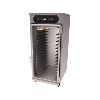hotLOGIX Humidified Holding Cabinet-HL10 Series, one compartment, 3/4 height, insulated, (28) 12″ x 20″ or (14) 18″ x 26″ pan capacity, universal slides, (1) solid field reversible door, electronic controls, top-mount forced air heat with water reservoir, autofill water connection, stainless steel construction, (4) 5″ swivel casters (2 with brakes), cULus, UL EPH Classified