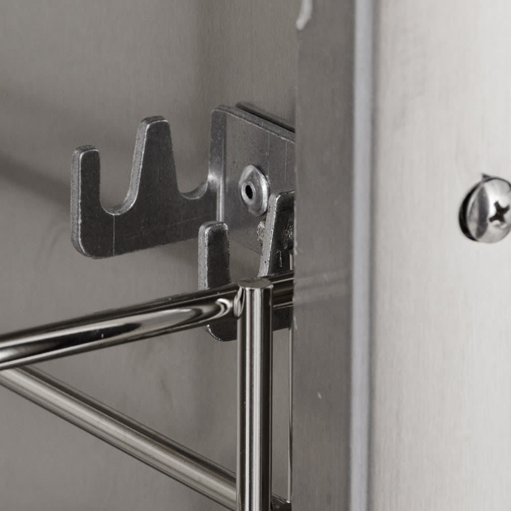 - Adjustable, edge-mounted hinges with a chrome plate finish