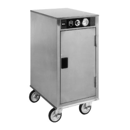Heated Cabinet, mobile, 1 door, insulated, top mounted forced-air heating system, removable slides for (9) 12″x 20″ pans, slides on 2-3/4″ centers, stainless steel construction, 4″ swivel casters, cUL, UL EPH