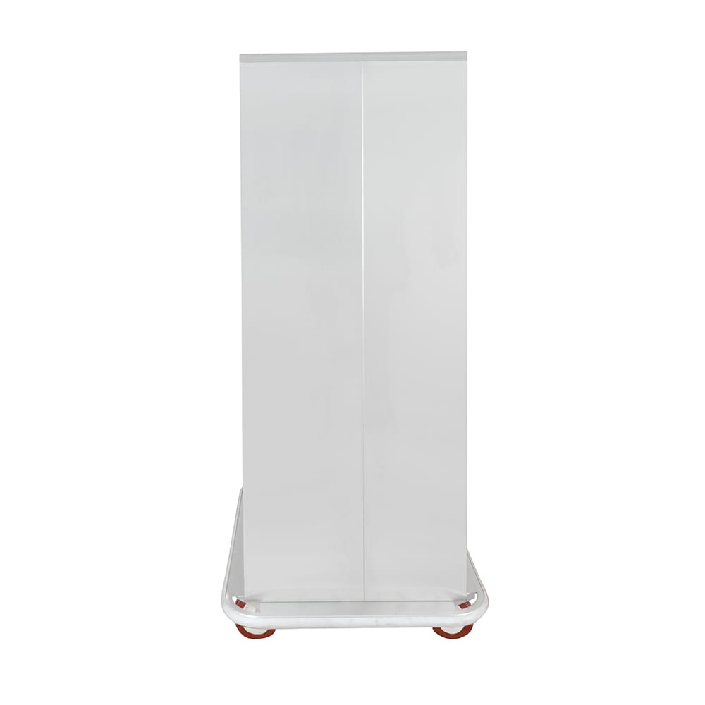 The Carter-Hoffmann PH1830 mobile heated cabinet can hold 16 full-size pans and keep food at safe serving temperatures. In about 25 minutes, the bottom-mounted heating system preheats and can provide temperatures as high as 200 degrees Fahrenheit. Heat stays inside with fiberglass insulation wrapped around the cabinet, and when ready for transport, users can secure the door with the latch and wheel the cabinet around by the side handles. To help with maneuvering, the wheels are offset, and for protection, a vinyl bumper protrudes from the bottom, cushioning any impacts. After reaching the destination, the casters can be locked to keep the unit in place. The door swings open wide to 180 degrees for unloading pans. Constructed of stainless steel, this Carter-Hoffmann PH1830 heated transport cart is durable and effortless to clean. All of its raw edges have been turned inward, protecting users from cuts and scrapes.