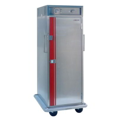 Heated Cabinet, HD correctional features, mobile, insulated, top mounted forced air heat system, universal slides hold (32) 12″x20″ or (16) 18″x26″ pans, 3-1/2″ spacing, slides adjustable 1-3/4″ increments, stainless steel construction, flush dr, wrap-around bumper, 6″ swivel casters, cUL, UL EPH