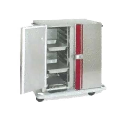 Heated Cabinet, mobile, insulated, 2 door, bottom mount forced- air heat system, universal slides hold (50) 12″x20″ or (25) 18″x26″ pans, 3-1/2″ spacing, slides adjustable 1-3/4″ increments, stainless steel construction, wrap-around bumper, 6″ casters(2 swivel,2 rigid), two doors, cUL, UL EPH, CE