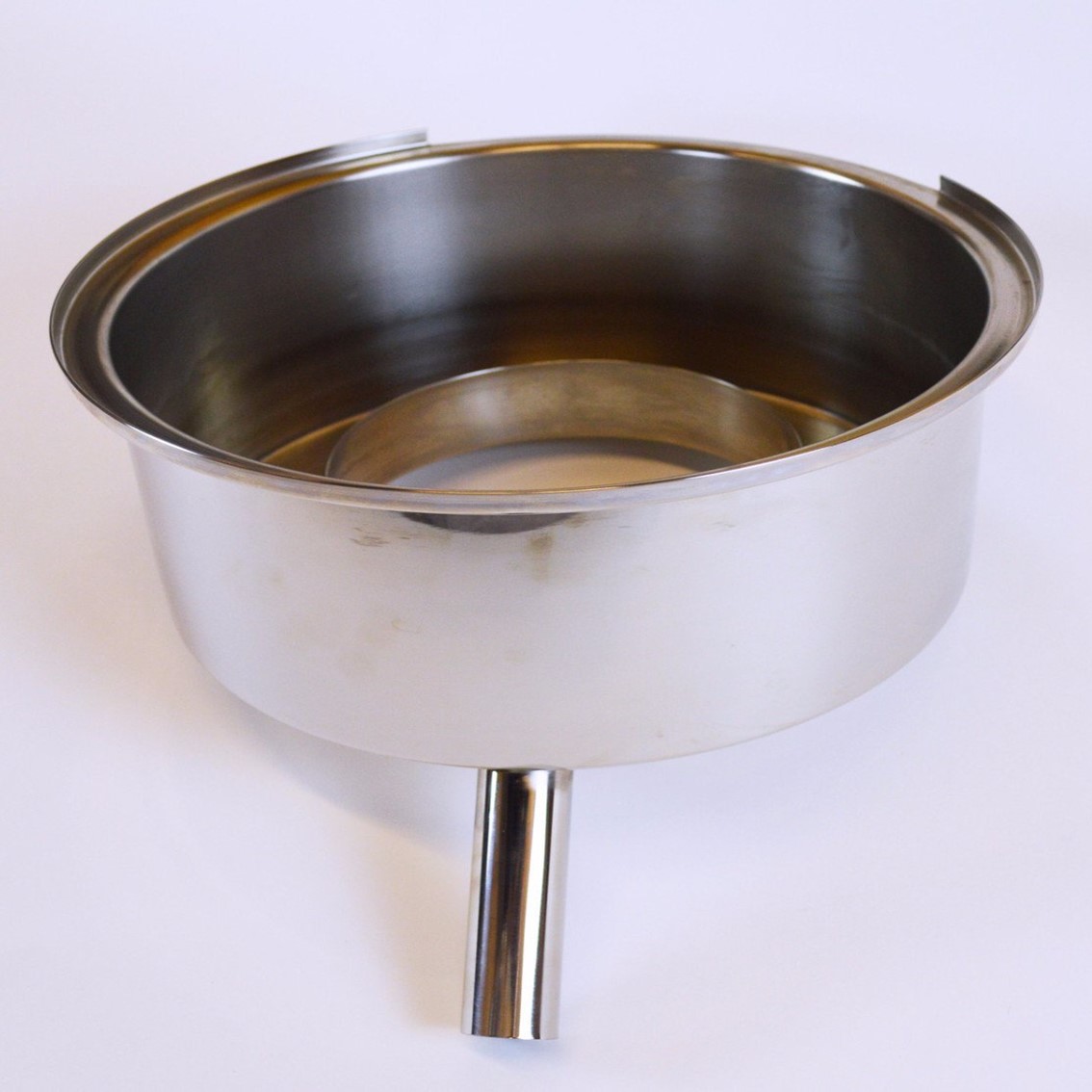 A stainless steel bowl for the ES-700 fruit and vegetable juicer. The juice bowl houses the pulp retainer ring and the basket assembly.
