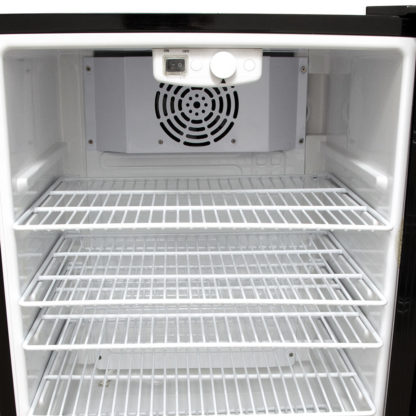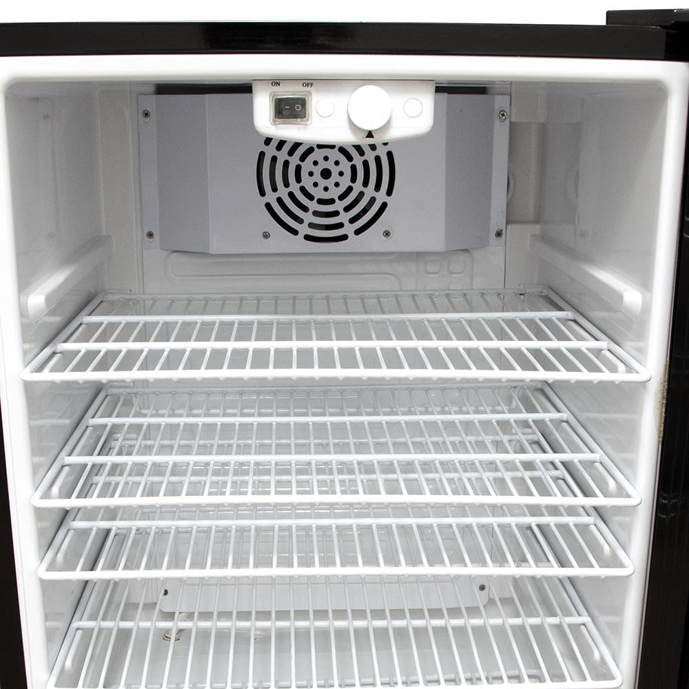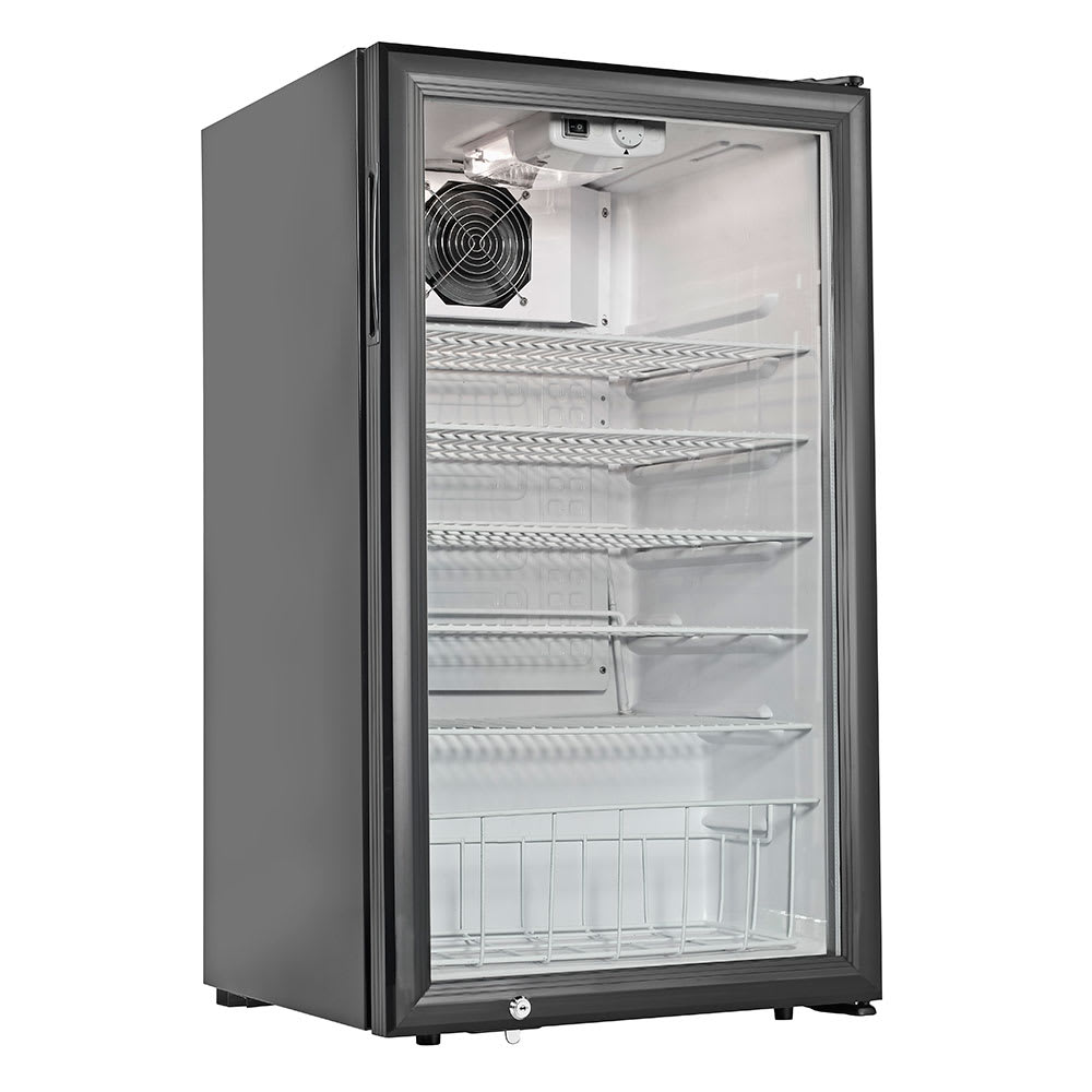 Merchandise chilled beverages near your checkouts or in your concession stand with the Cecilware Pro CTR3.75 countertop display refrigerator. This unit offers 3.8 cubic feet of storage space with five PVC-coated shelves that are height adjustable, allowing you to accommodate items of different sizes. The thermostat can be adjusted from 34 to 45 degrees Fahrenheit, and the energy-efficient, double-paned thermal glass helps to maintain appropriate temperatures and lets customers easily see merchandise.