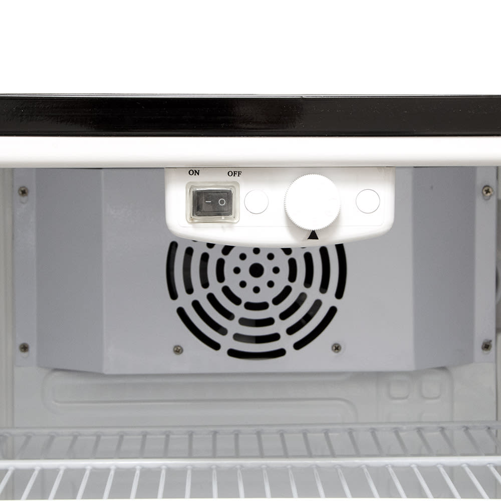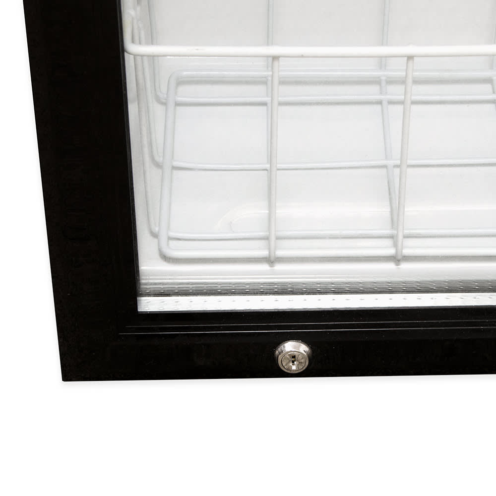 The durable, black powder-coated exterior finish is easy to clean, and it resists chipping and pitting. The secure, built-in door lock prevents tampering and theft when products are not being merchandised for self-service. Interior lights illuminate merchandise in the Cecilware Pro CTR3.75 countertop display refrigerator so customers can easily see their choices.