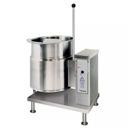 For ease of installation, this Cleveland KET-6-T tabletop steam kettle does not need a boiler or water connection; instead, the kettle jacket already comes filled with water. When turned on, elements heat the water and turn it to steam, which then cooks contents at the desired temperature. The kettle itself has a 50-PSI rating-high enough to create steam that is hotter than usual-so it can cook food very quickly. Then, cooked food can be steadily poured out with the manual tilt mechanism, and the lip accommodates chunky and dense foods, enabling users to cook various dishes. This kettle holds as much as 6 gallons of product, which makes approximately (96) 4-ounce servings. Because of this large production capacity, the kettle is ideal for cafeterias in schools or correctional facilities.