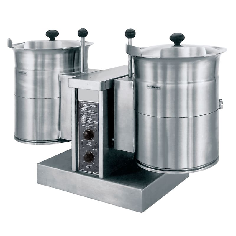Kettle, electric, countertop, twin 6 gallon capacity, tilt type, center support console, two-thirds steam jacket, stainless steel construction
