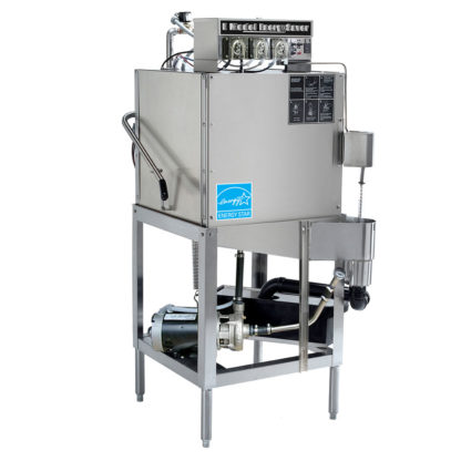 Energy Mizer/ Dishwasher, door type, 25-3/4″ W, low temperature chemical sanitizing, top mounted controls, straight-thru design, (40) racks/hour, external sump, Poly Pro scrap accumulator, auto start/stop, stainless steel construction, 17″ door opening, includes (1) open & (1) peg rack, 1 HP wash pump, ENERGY STAR/, ETL-Sanitation, cULus