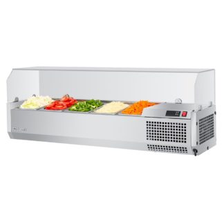 Keep salad, condiments, toppings, and other food items cold on this six pan countertop salad bar. This commercial refrigerated salad bar is perfect for pizza shops, restaurants, and food service establishments that serve a variety of cold salads. A self-contained unit, our salad bar refrigerator maximizes energy consumption and consistently maintains your toppings within the 33°F to 41°F temperature range. A digital temperature controller makes it super easy for your staff to adjust the temperature, while an automatic defrosts feature increases the efficiency of the unit.