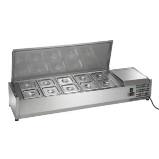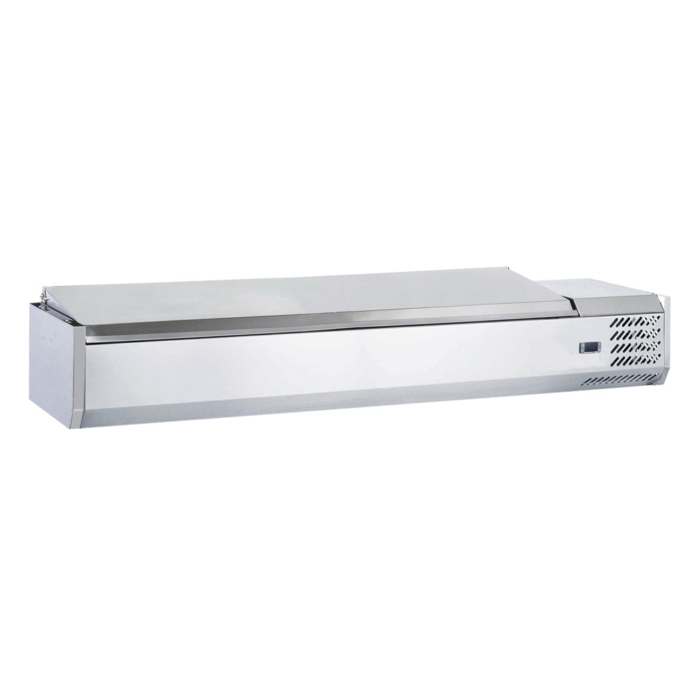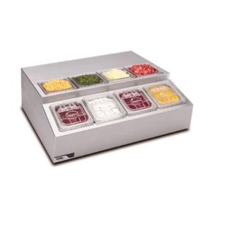 Keep salad, condiments, toppings, and other food items cold on this six pan countertop salad bar. This commercial refrigerated salad bar is perfect for pizza shops, restaurants, and food service establishments that serve a variety of cold salads. A self-contained unit, our salad bar refrigerator maximizes energy consumption and consistently maintains your toppings within the 33°F to 41°F temperature range. A digital temperature controller makes it super easy for your staff to adjust the temperature, while an automatic defrosts feature increases the efficiency of the unit.