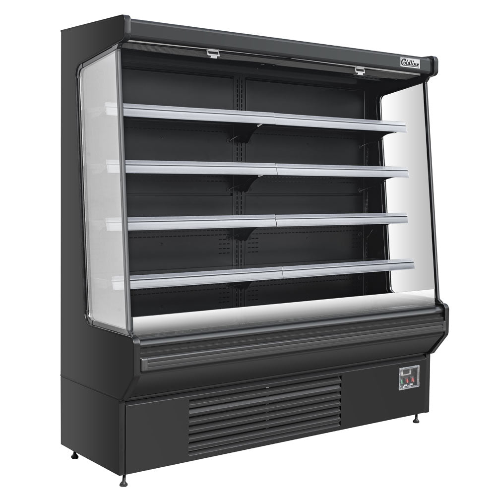 Coldline SOC-76-B 76″ Black Refrigerated Air Curtain Merchandiser features LED lighting for each (4)shelf, and will improve impulse sales while keeping your salads, dairy, deli or baked goods it safe cold temperatures. The built-in condensation evaporating systems means no drain required.