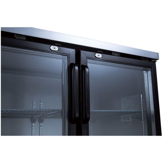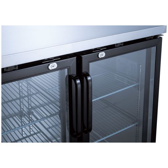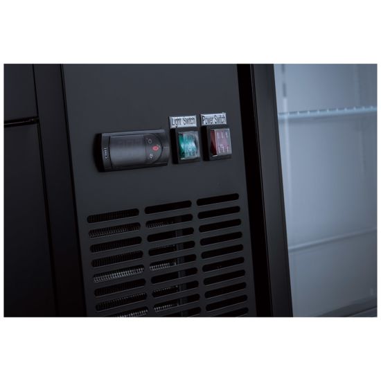 Store and display refrigerated beer bottles and beverages behind your bar with this narrow depth 48″ undercounter back bar cooler with glass doors. At only 24″ front to back, this commercial beer bottle refrigerator will fit perfectly into a bar with limited space, while providing ample storage with its 13 cu. ft. capacity. The heavy duty 304 stainless steel top makes this beer cooler great to use as a worktop refrigerator, and the front breathing compressor allows it to install safely under any counter or bar. All back bars come with interior LED lighting and optional casters are available. Coldline back bar refrigerators available in 48, 60, 72″ lengths, with swing or sliding glass doors, or with solid black doors.
