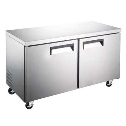 The Coldline UC 60″ is an excellent freezer for any under-counter or worktop application. This 2 door unit provides 15 cubic feet of storage and a thick 60″ stainless steel work surface. Interior and Exterior made of stainless steel. Wheels, adjustable shelves, and self-closing doors come standard on all units. Optional small casters will reduce height by 1″. Eco-friendly R290 refrigeration system maintains -8 to 0 degree temperature to keep your food in the safe zone.
