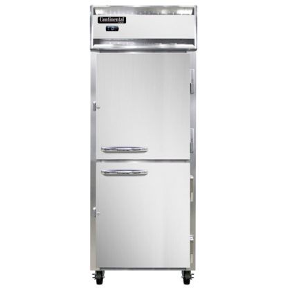 Extra-Wide Freezer, reach-in, 28-1/2″W, one-section, self-contained refrigeration, stainless steel exterior, aluminum interior, standard depth, half-height solid doors, cylinder locks, electronic control with digital display, unit can be adjusted to operate as low as -10°F, hi-low alarm, unit comes standard with expansion valve, electric condensate evaporator, R290 Hydrocarbon refrigerant, 1/2 HP, cETLus, NSF, Made in USA, ENERGY STAR
