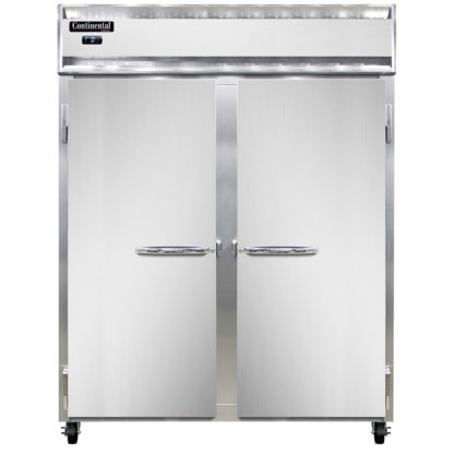 Extra-Wide Freezer, reach-in, 57″W, two-section, self-contained refrigeration, stainless steel exterior, aluminum interior, standard depth, full-height solid doors, cylinder locks, electronic control with digital display, unit can be adjusted to operate as low as -10°F, hi-low alarm, electric condensate evaporator, R290 Hydrocarbon refrigerant, 1/2 HP, cETLus, NSF, Made in USA, ENERGY STAR