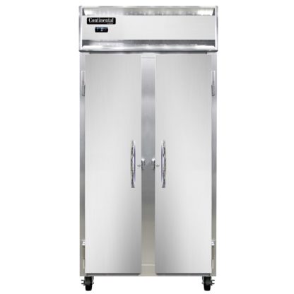 Slim Line Freezer, reach-in, 36-1/4″W, two-section, self-contained refrigeration, standard depth, stainless steel front, aluminum interior & ends, full-height solid doors, cylinder locks, electronic control with digital display, hi-low alarm, unit comes standard with expansion valve, electric condensate evaporator, R290 Hydrocarbon refrigerant, 1/2 HP, cETLus, NSF, Made in USA