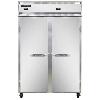 Refrigerator/Freezer, reach-in, two-section, self-contained refrigeration, stainless steel exterior & interior, standard depth, (2) full-height solid self-closing doors, cylinder locks, electronic control with digital display, freezer can be adjusted to operate as low as -10°F, hi-low alarm, unit comes standard with expansion valve, LED interior lighting, (6) epoxy-coated steel shelves, electric condensate evaporator, R290 Hydrocarbon refrigerant, dual 1/4 & 1/2 HP, cETLus, NSF, Made in USA