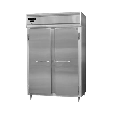 Designer Line Refrigerator, reach-in, two-section, self-contained refrigeration, stainless steel exterior & interior, standard depth cabinet, full-height stainless steel doors, cylinder locks, electronic control with digital display, hi-low alarm, unit comes standard with expansion valve, 6″ stainless steel legs, R290 Hydrocarbon Refrigerant, 1/3 HP, cETLus, NSF, Made in USA