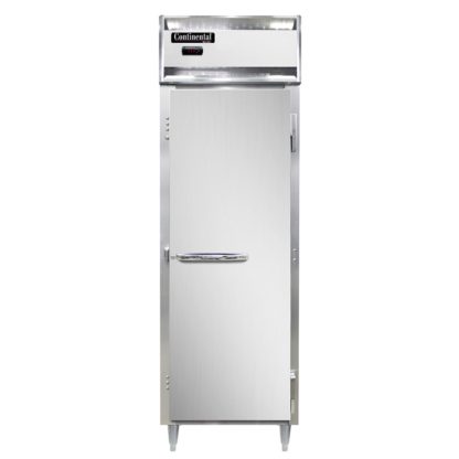 The Continental Refrigeration DL1W single-section reach-in warmer has one full-height door, which is made of stainless steel to resists corrosion and denting through frequent use. Accommodating 19 tray slides, the unit has an internal capacity of 21 cubic feet. So interior products are visible, the unit is outfitted with lights.
