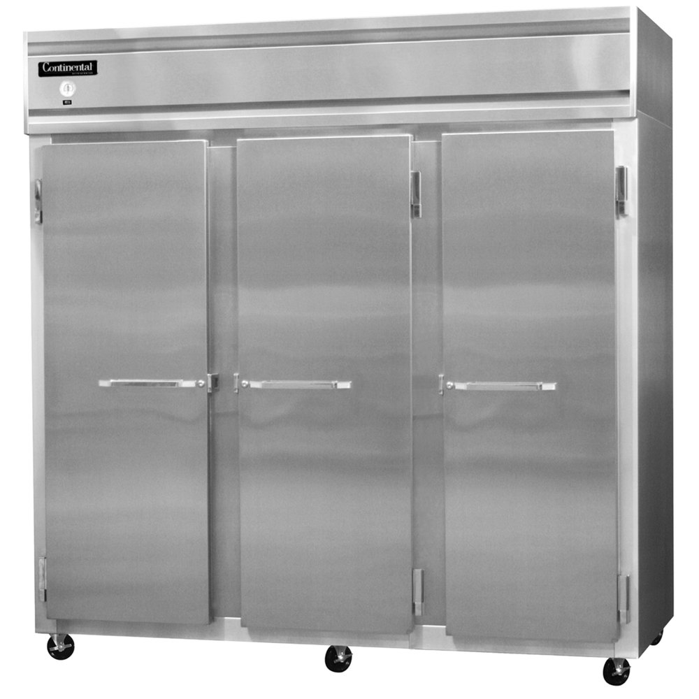 This Continental Refrigerator 3F-SS 78″ reach-in freezer is the perfect choice for busy kitchens. Boasting 70 cu. ft. of internal storage space, this three section solid door freezer is a great solution for expanding your frozen product storage!