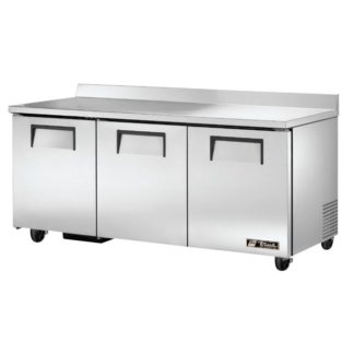 The Continental Refrigerator SW72ND worktop refrigerator has a flat top to provide a surface for users to prep foods. Users can ensure the refrigerator operates at the proper temperature by checking its digital display. If temperatures get too high or low, the unit sounds an alarm to inform nearby staff about the change.