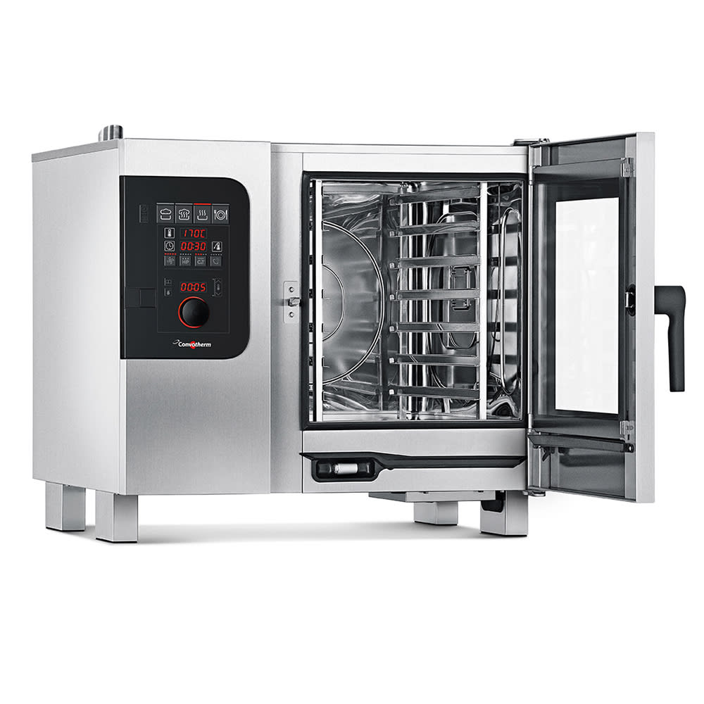 Several cooking modes allow cooks to choose the precise settings to achieve the results they need. The Convotherm C4ED6.10GB combi oven’s three main cooking modes include steam only, hot air only, and a combination mode that gives this type of equipment its name. In addition to those, four specialty features enable staff to cook using high-humidity, traditional baking, convection baking, and moisture removal.