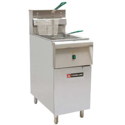 The Cookline CF-40E stainless steel electric deep fryer offers the perfect blend of quality, durability, and performance. This electrical floor fryer is ideal for light-duty usage at restaurants, pizzerias, and concession stands. It delivers the power you need to make basket after basket of french fries, hot wings, onion rings, and fried chicken ready for your customers. The CF-40E is what you need to meet the daily demands of your busy kitchen, and conveniently make a variety of appetizers and entrees!