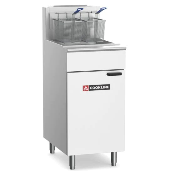 The Cookline CF-50-LP stainless steel deep fryer offers the perfect blend of quality, durability, and performance. This floor fryer is ideal for light-duty usage at restaurants, pizzerias, and concession stands. 4 vertical burners (each 30,000 BTU/Hr) deliver the power you need to make basket after basket of french fries, hot wings, onion rings, and fried chicken ready for your customers. The CF-50-LP is what you need to meet the daily demands of your busy kitchen, and conveniently make a variety of appetizers and entrees!