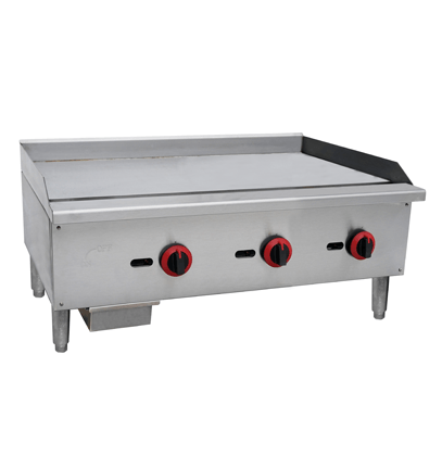 This Cookline gas countertop griddle brings eye-pleasing aesthetics, smooth functionality and long-term reliability to your cookery. It is ideal for diners, cafeterias, and medium-sized restaurants.