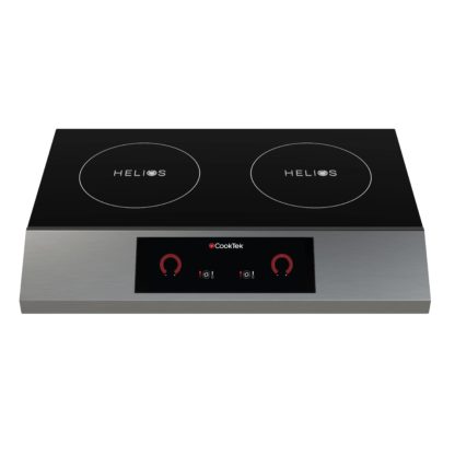 CookTek’s induction double hob cooktops with HELIOS controls offer an efficient, powerful, and user-friendly solution for both commercial and home kitchens, making them a popular choice for chefs and food enthusiasts alike.