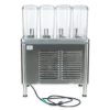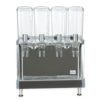 Crathco Simplicity Bubbler Mini-Quad Pre-Mix Cold Beverage Dispenser, electric, agitator model, (4) 2.4 gallon clear plastic bowls, 35° to 41°F temperature range, 9″ cup clearance, stainless steel base, 4″ legs, 1/10 HP, 120v/60/1-ph, 8.5 amps, NEMA 5-15P, cULus, NSF (shipped in 2 boxes)