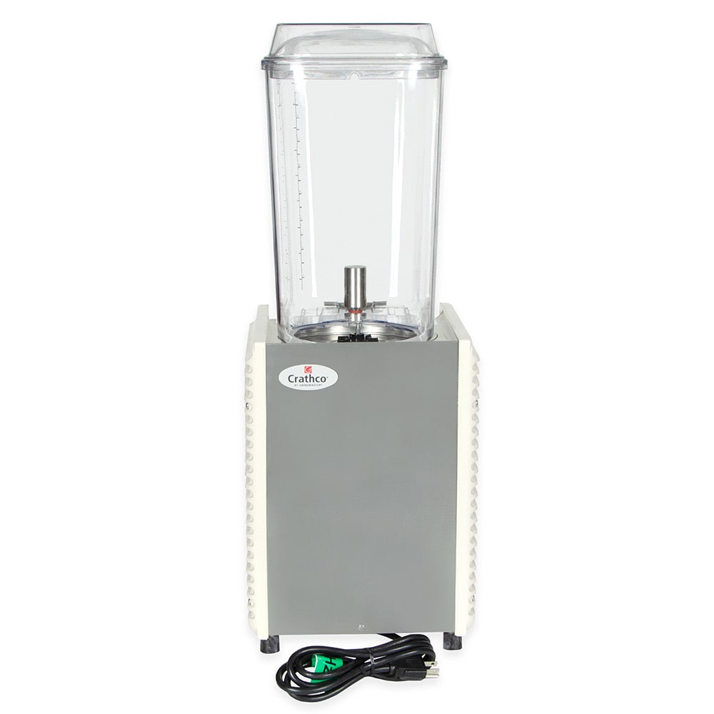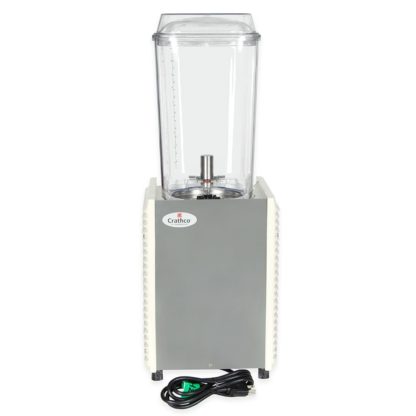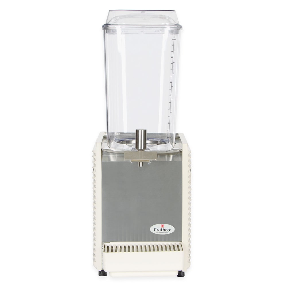 Crathco Classic Bubbler Pre-Mix Cold Beverage Dispenser, single, electric, (1) 5 gallon clear polycarbonate bowl & cover, 2-piece stainless steel dripless dispense valve, 35°to 41°F temperature range, 8-1/4″ cup clearance, includes spray & agitate circulation options, plastic side panels & drip tray, R134a, 1/6 HP, cULus, NSF (safe for milk) (shipped in 2 boxes)