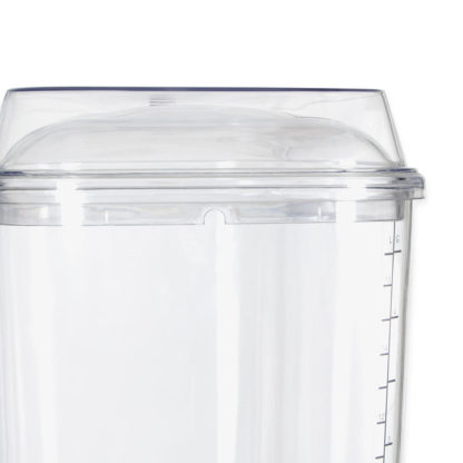 - Break-resistant polycarbonate bowl is clear to showcase the juice