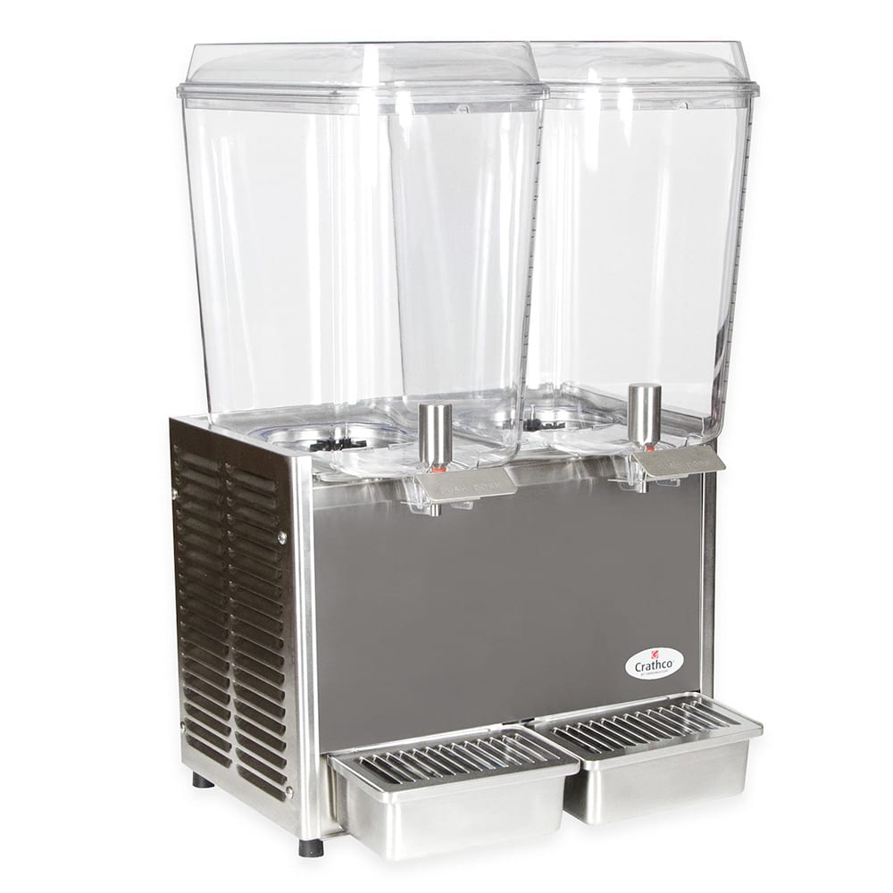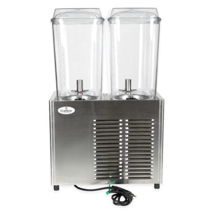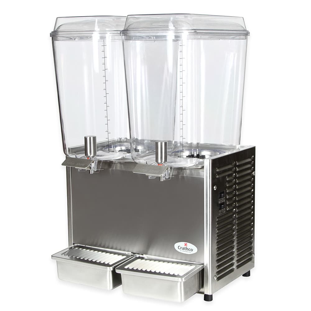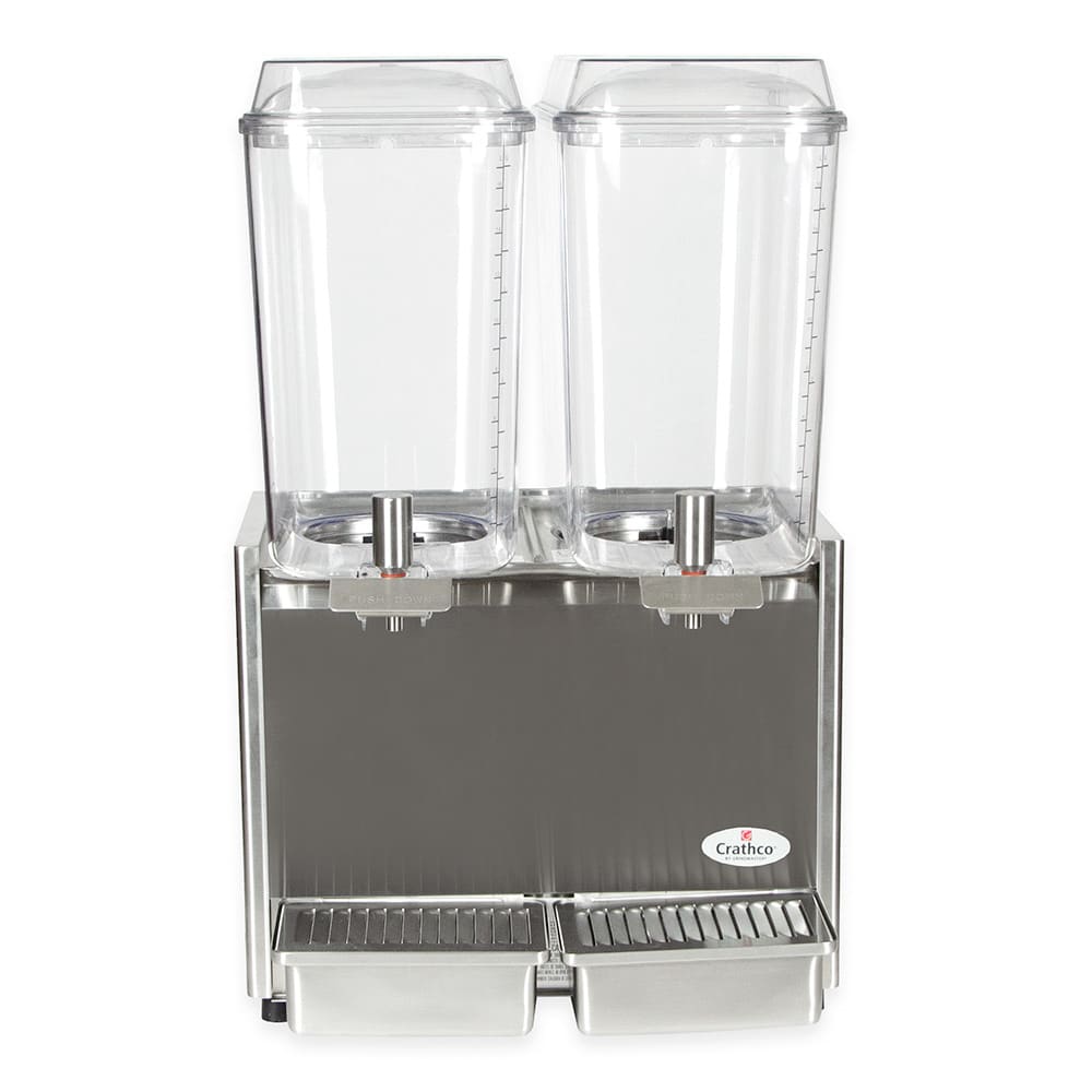 Crathco Classic Bubbler Pre-Mix Cold Beverage Dispenser, double, electric, (2) 5 gallon clear polycarbonate bowls & covers, 2-piece stainless steel dripless dispense valves, 35°to 41°F temperature range, 8-1/4″ cup clearance, includes spray & agitate circulation options, stainless steel side panels & drip tray, R134a, 1/5 HP, cULus, NSF, (shipped in 2 boxes)