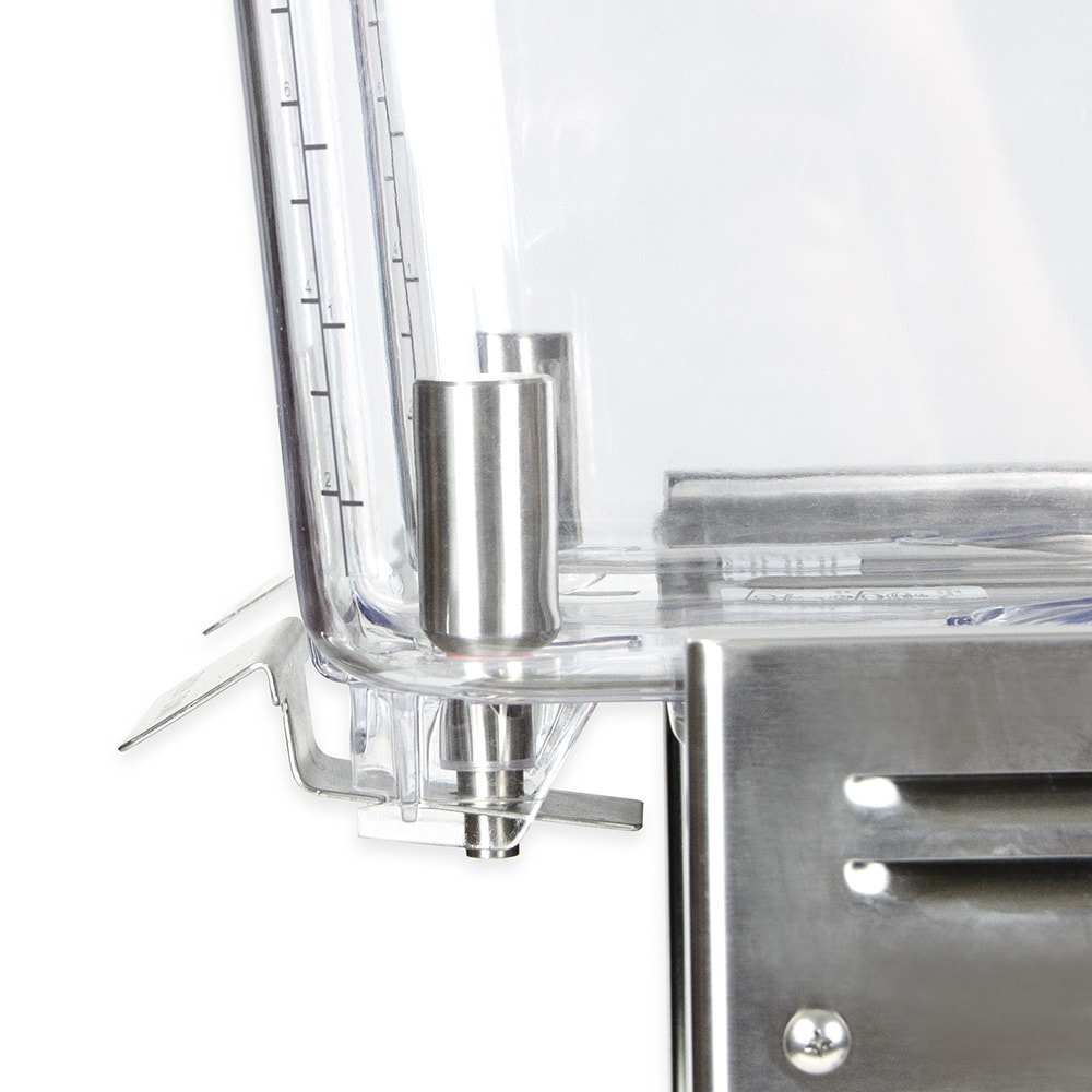 For durability and simplified cleaning, the Crathco D25-3 Classic Bubblers pre-mix cold beverage dispenser has stainless steel panels, and operators can display and serve drinks from two 5-gallon polycarbonate bowls. Measurement markings along the side of the bowls let employees accurately mix drinks and monitor how much product is left. To lessen downtime during business hours, the bowls can be removed individually for cleaning and refilling product.