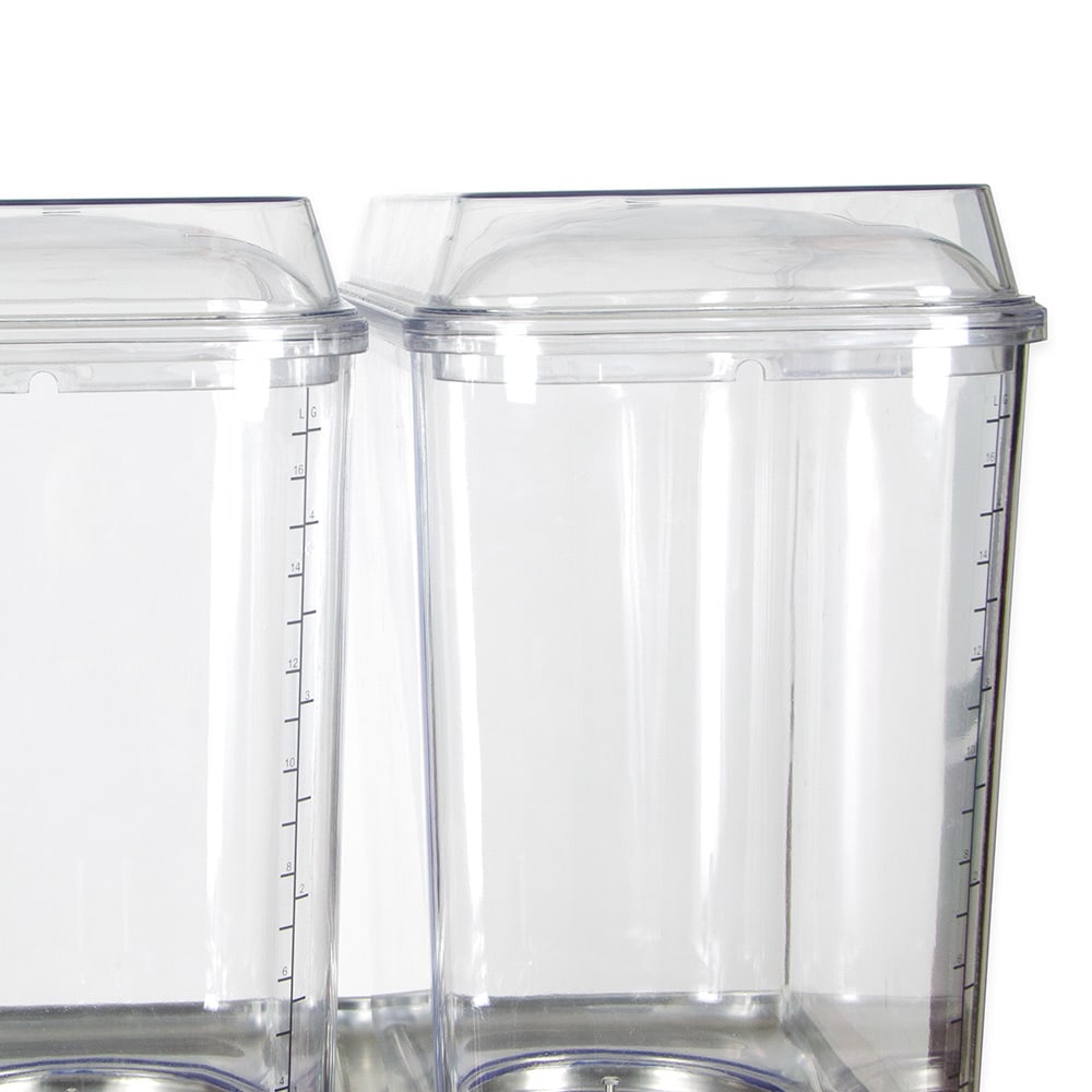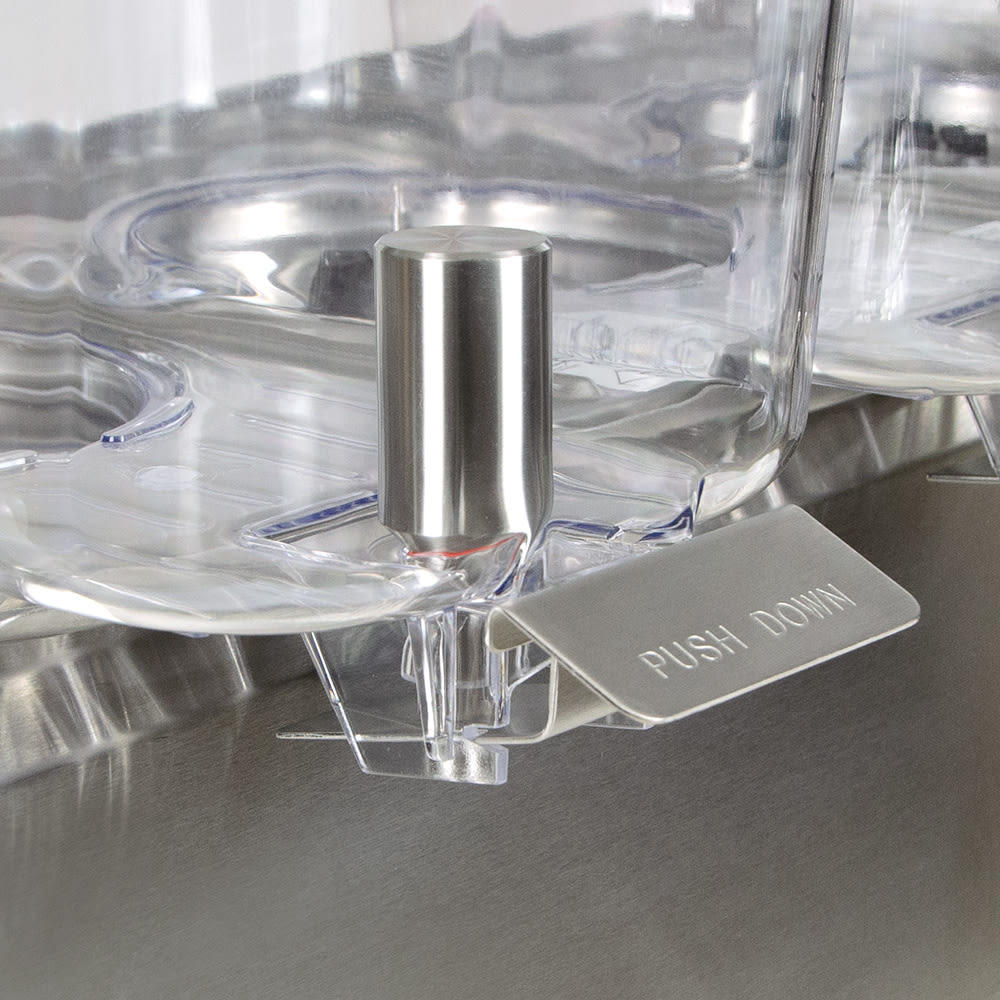 The Crathco D35-4-120 drink dispenser is part of the Crathco Classic Bubblers series. This model has three 5-gallon bowls that feature clearly-marked measurements for adding the correct amount of liquid and rounded corners for cleaning. Bowls are made of clear polycarbonate, along with the spray tube creating movement inside the bowl, to help merchandise drinks and attract thirsty customers. An agitator is included for use with drinks such as coffee, tea, or natural juice that would produce too much foam with a spray tube.