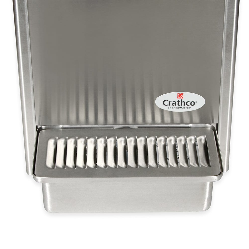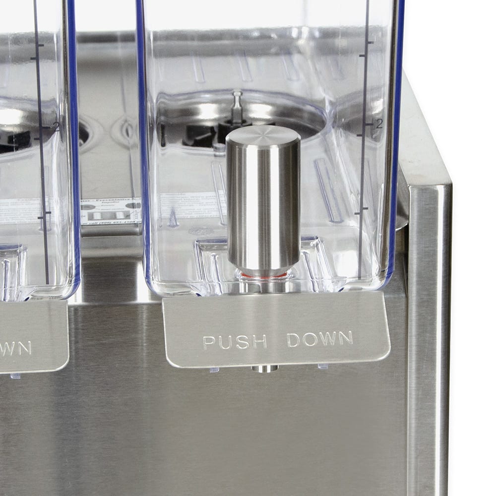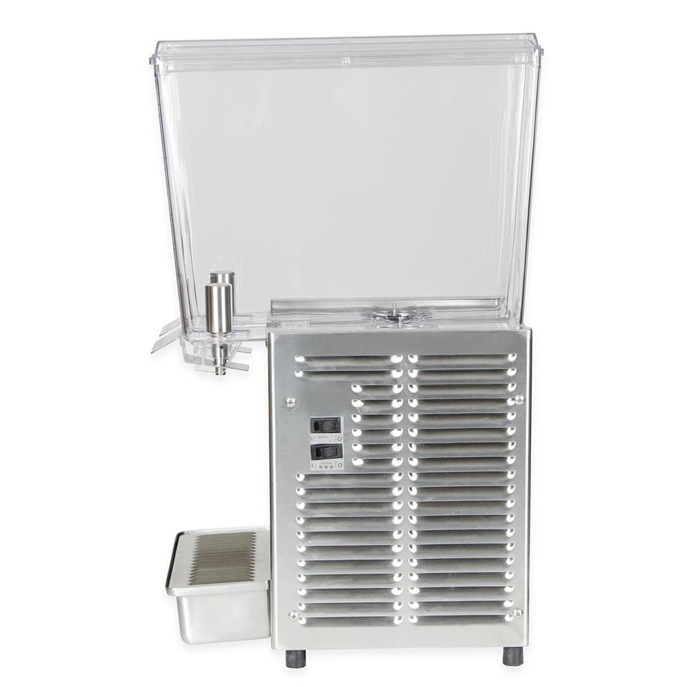 The Crathco E29-3 pre-mix cold beverage dispenser has two compact, 2.4-gallon bowls. Made of polycarbonate, the bowls are resistant to breaking and are clear so guests can see the beverages. Agitators are included with this unit; they spin in the bottom of the bowls to mix the drinks. This design is perfect for tea, coffee, and high-sediment drinks like juice. The dispensing area accommodates 8-inch-tall cups and has a large-capacity drip tray that catches leaks and spills. This Crathco E29-3 pre-mix cold drink machine has a unique evaporator and efficiently designed pump, quickly cooling drinks after the unit starts up. The dispenser keeps the beverages cold until the bowls are completely empty.