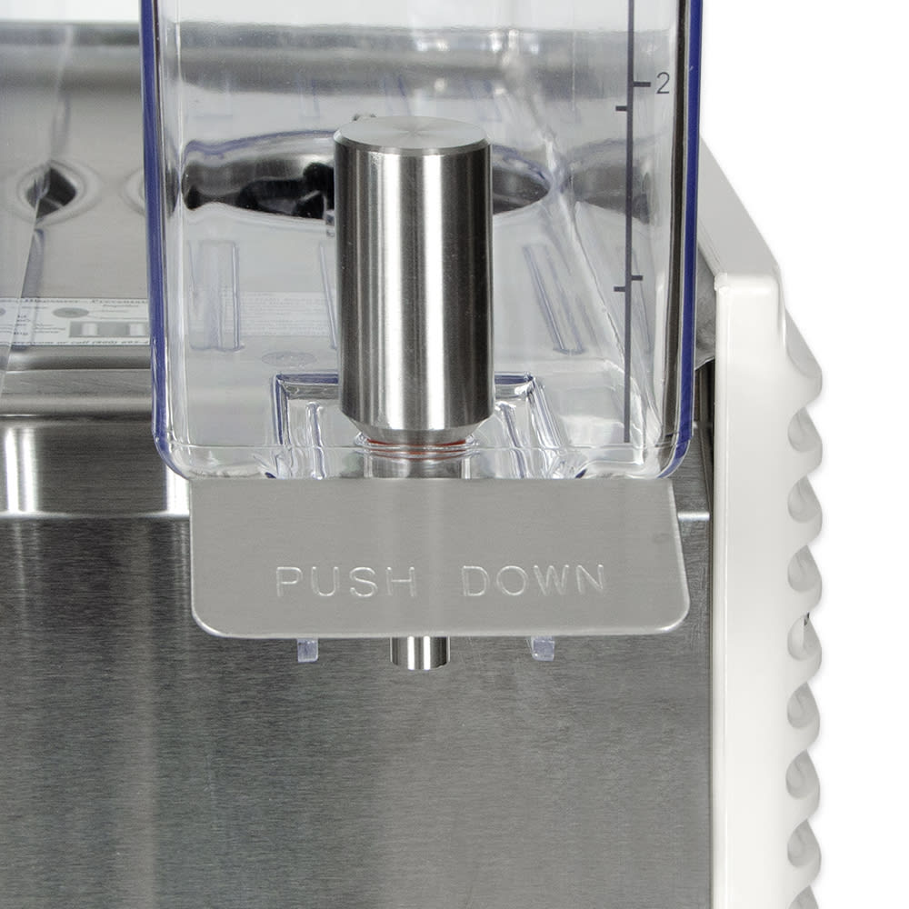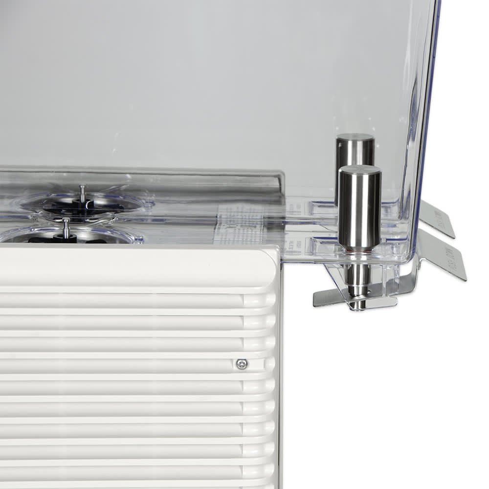 The Crathco E29-4 Mini-Twin model from the Classic Bubblers series is a premix cold beverage dispenser that comes with two 2.4-gallon bowls, enabling you to provide two different beverages in a small footprint. These bowls, which have matching, insulated lids, are constructed from clear polycarbonate, a durable material that provides customers and staff with an unrestricted view of the product inside. This, along with the measurement markings along the front of the bowls, will help staff monitor how much beverage is left.