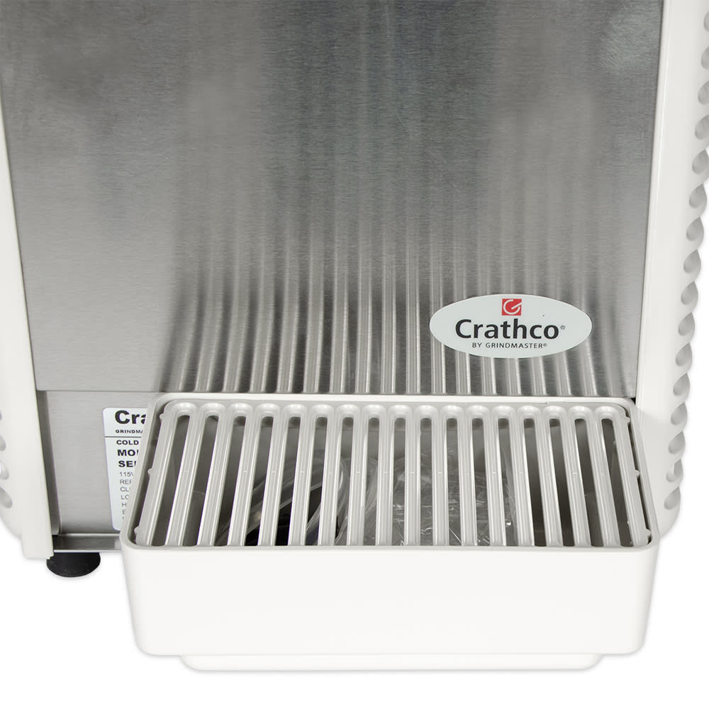 To ensure your foodservice operation can provide drinks like tea that tend to foam, the Crathco E29-4 comes with traditional spray circulation as well as an agitate circulation option, which prevents unwanted foam. This beverage dispenser is equipped with 1/6-hp refrigeration and a pump and unique evaporator that work to efficiently cool drinks more quickly, so that you experience less downtime. Able to be used with cups as tall as 8 inches, this drink machine has dripless pouring valves and a drip tray to contain spills.