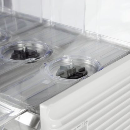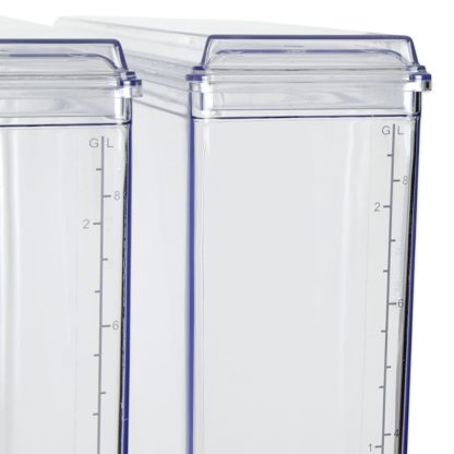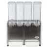 The Crathco E49-4 from Grindmaster-Cecilware is part of the Classic Bubblers series and designed to help you offer multiple drink options in a small footprint, with four 2.4-gallon bowls that only require a width of 21 inches. The bowls and matching lids have rounded corners, which prevent liquid or particles from getting trapped; they are also constructed from durable polycarbonate to provide a long life and a clear view of the beverages inside, which merchandises it to customers and helps employees monitor your product.